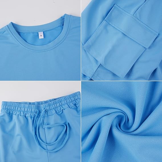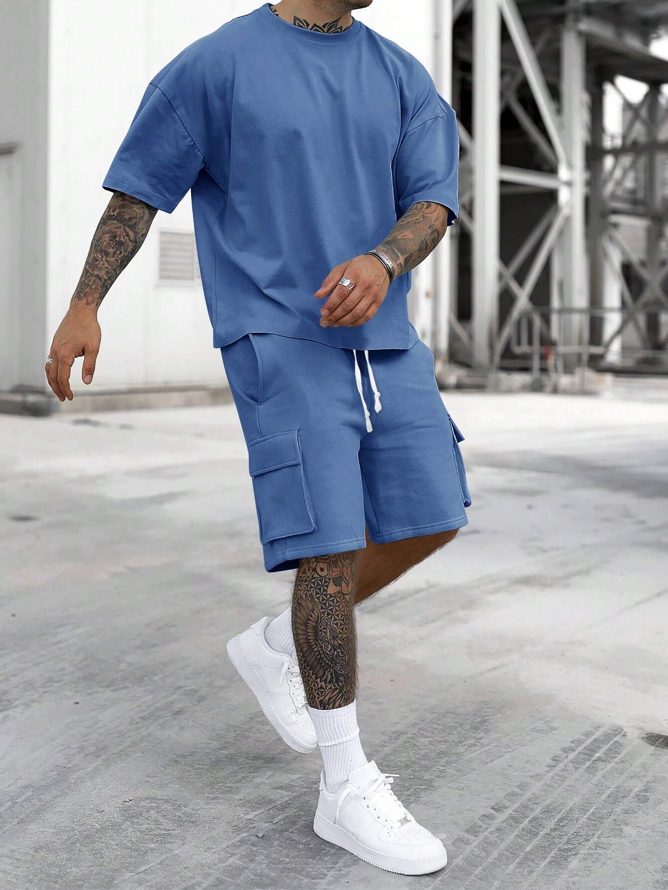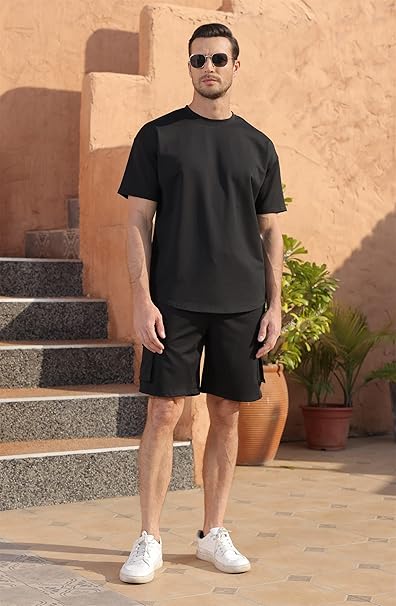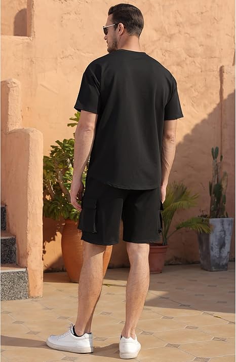• [S-6XL] Men's Solid Tee & Cargo Shorts Set