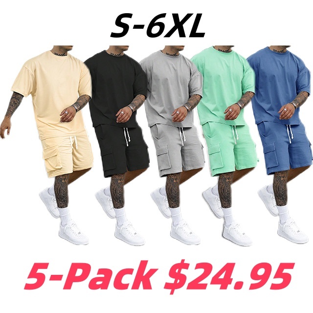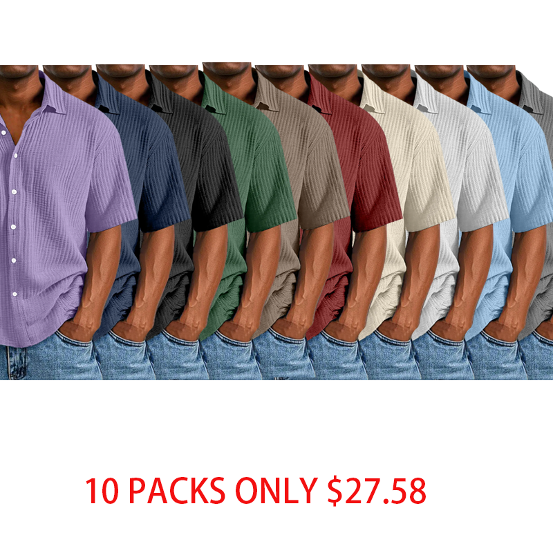 Men's Daily Wrinkled Texture Pocket Shirt Shorts Set